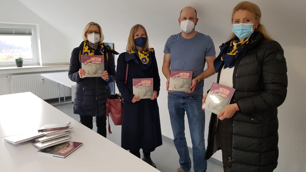 Im Zeitraum November bis Dezember 2021 überreichten wir 100 „Mut-mach-Bücher“ mit dem Titel „Wie man Riesen bekämpft“ an verschiedene soziale Einrichtungen in Hagen. Diese Bücher ermutigen dazu, in schwierigen Lebenssituationen nicht aufzugeben, sondern zu kämpfen.