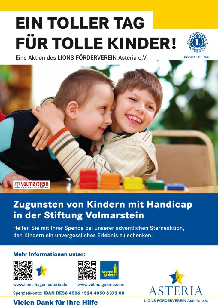 Dann spenden Sie mit dem Stichwort „Ein toller Tag“ auf das Spendenkonto des LIONS-FÖRDERVEREIN Asteria e.V.