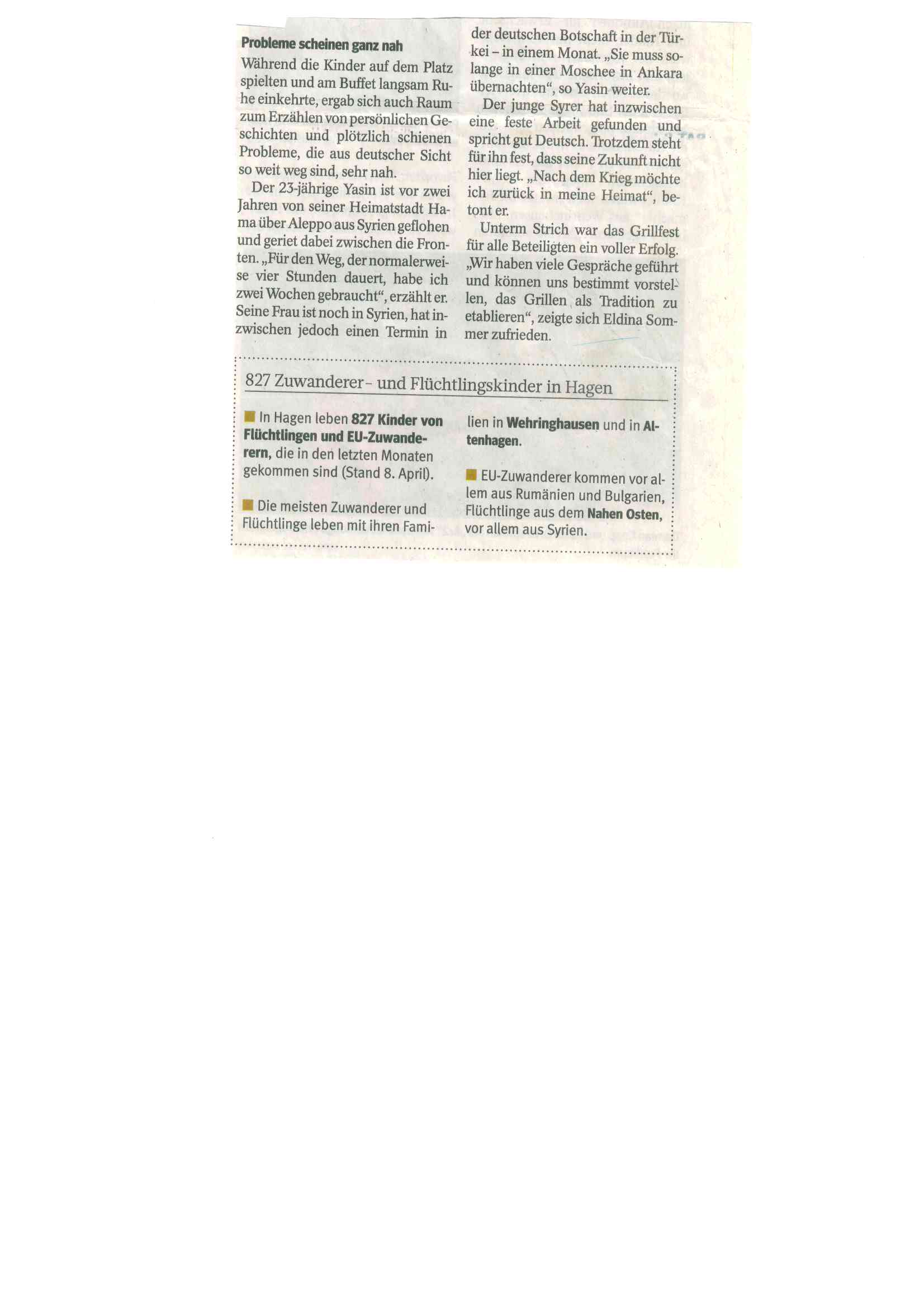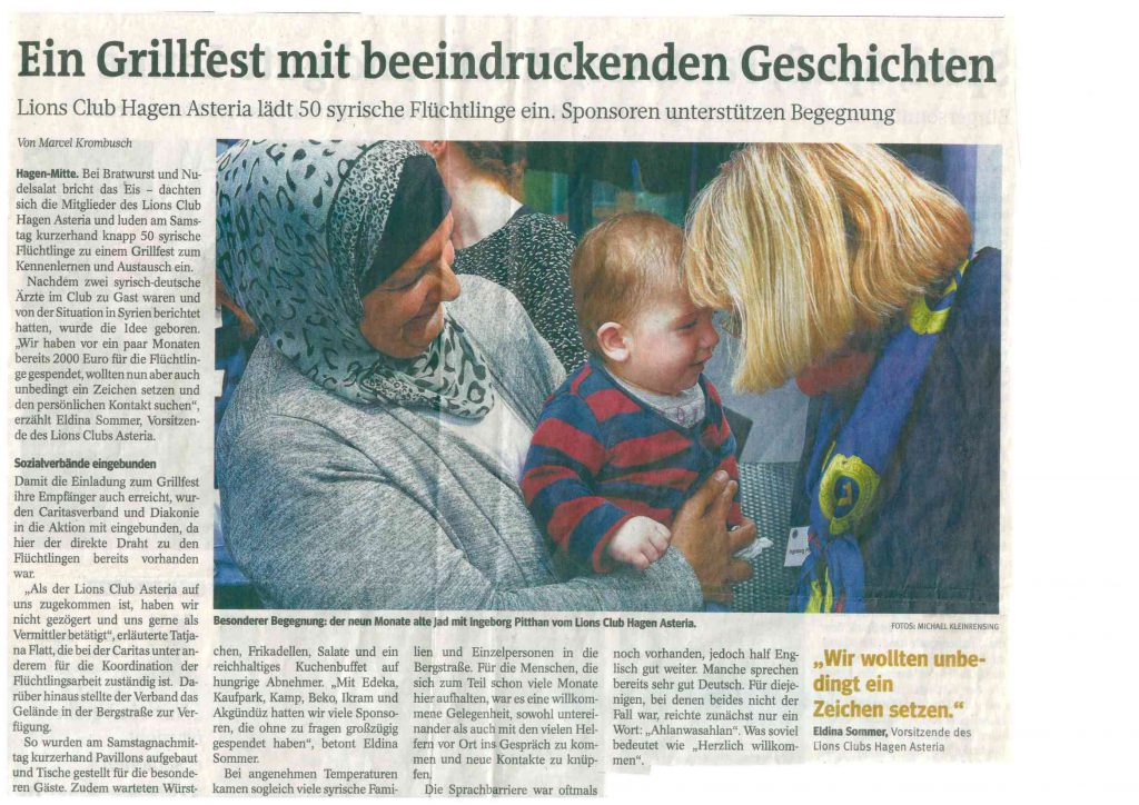 Grillfest für syrische Flüchtlinge von LC ASTERIA | Mai 10, 2015 | Allgemein, Presse Westfalenpost im Mai 2015